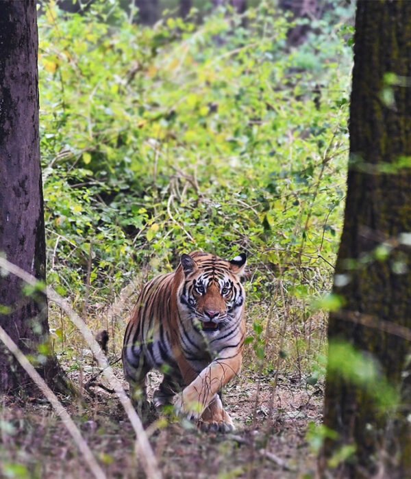 A majestic tiger strolling through his territory in Kanha Tiger Reserve